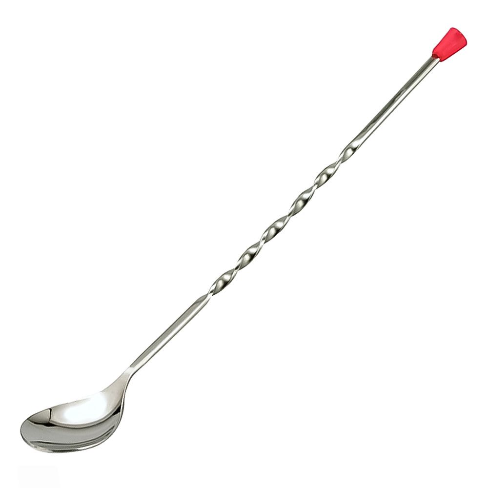 Ложка барменская с красной кнопкой изготовлена из нержавеющей стали