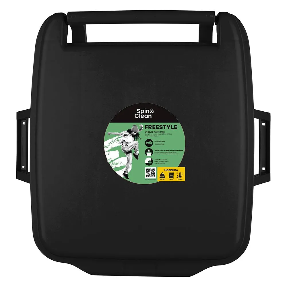 Корпус бака изготовлен из полиэтилена и выдерживает погодные условия: прямой солнечный свет, низкие температуры, проливные дожди. Толщина стенки 2,5 мм, дает исключительную прочность, исключает деформации при перепадах температур. Позволяет выдерживать высокие нагрузки (до 300 кг) при заполнении и перемещении бака с тяжелыми отходами. Бак укомплектован герметичной крышкой, съемной педалью и колесами.