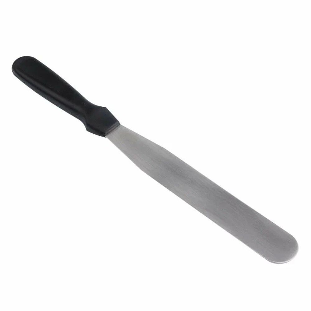 Удобный инструмент для оформления кондитерских изделий. С его помощью Вы сможете выложить начинку, аккуратно покрыть торт кремом, ганашем или глазурью, выровнять верхнюю и боковую поверхность изделия, устранить подтёки и недостатки. Рабочая часть выполнена из нержавеющей стали, экологичного и безопасного материала, который не вступает в окислительные реакции с продуктами. Длина изделия 290 мм, длина рабочей части 179 мм, ширина лезвия 30 мм