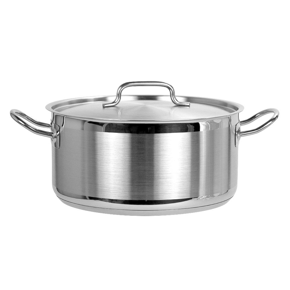 Толщина стенок 0,5 мм; изготовлена из нержавеющей стали 304; тройное сэндвич-дно (нерж-алюминий-нерж) обеспечивает превосходную теплопроводимость; ненагревающиеся стальные ручки; подходит для всех видов плит, включая индукцию; можно мыть в посудомоечной машине
