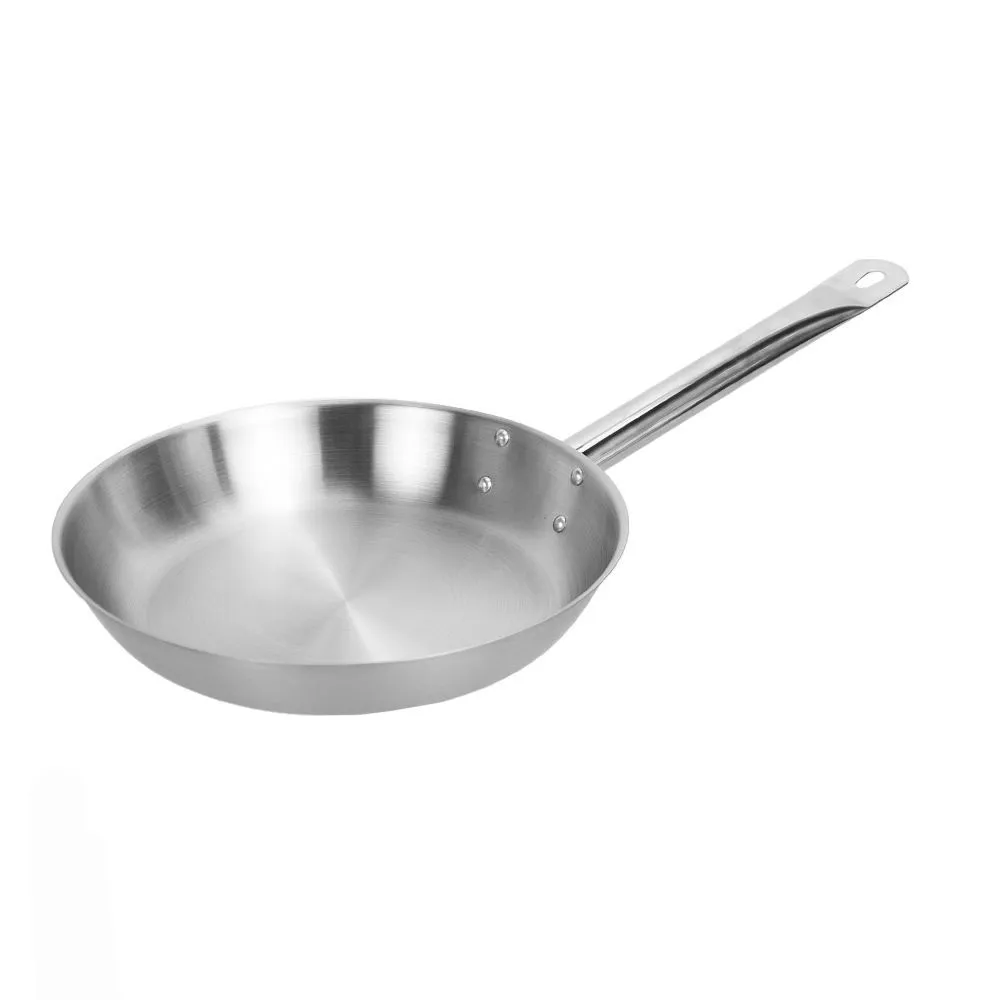 Сковорода изготовлена из нержавеющей стали. Многослойное капсульное дно, объединяет превосходную теплопроводность алюминия и магнитные свойства нержавеющей стали для индукционного нагрева. Внешняя поверхность матовая. Имеет длинную полую ручку. Многоточечное крепление ненагревающейся стальной ручки. Подходит для всех видов плит и посудомоечным машинам. Толщина изделия 0,8 мм, толщина дна 3,0 мм