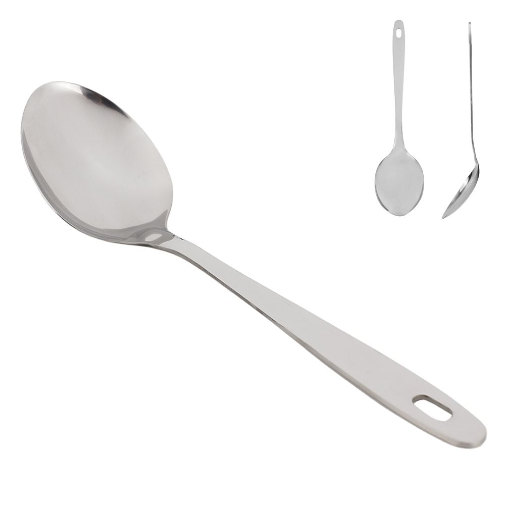 Ложка выполнена из нержавеющей стали - экологичного и безопасного материала. Он не вступают в окислительные реакции с продуктами во время готовки.