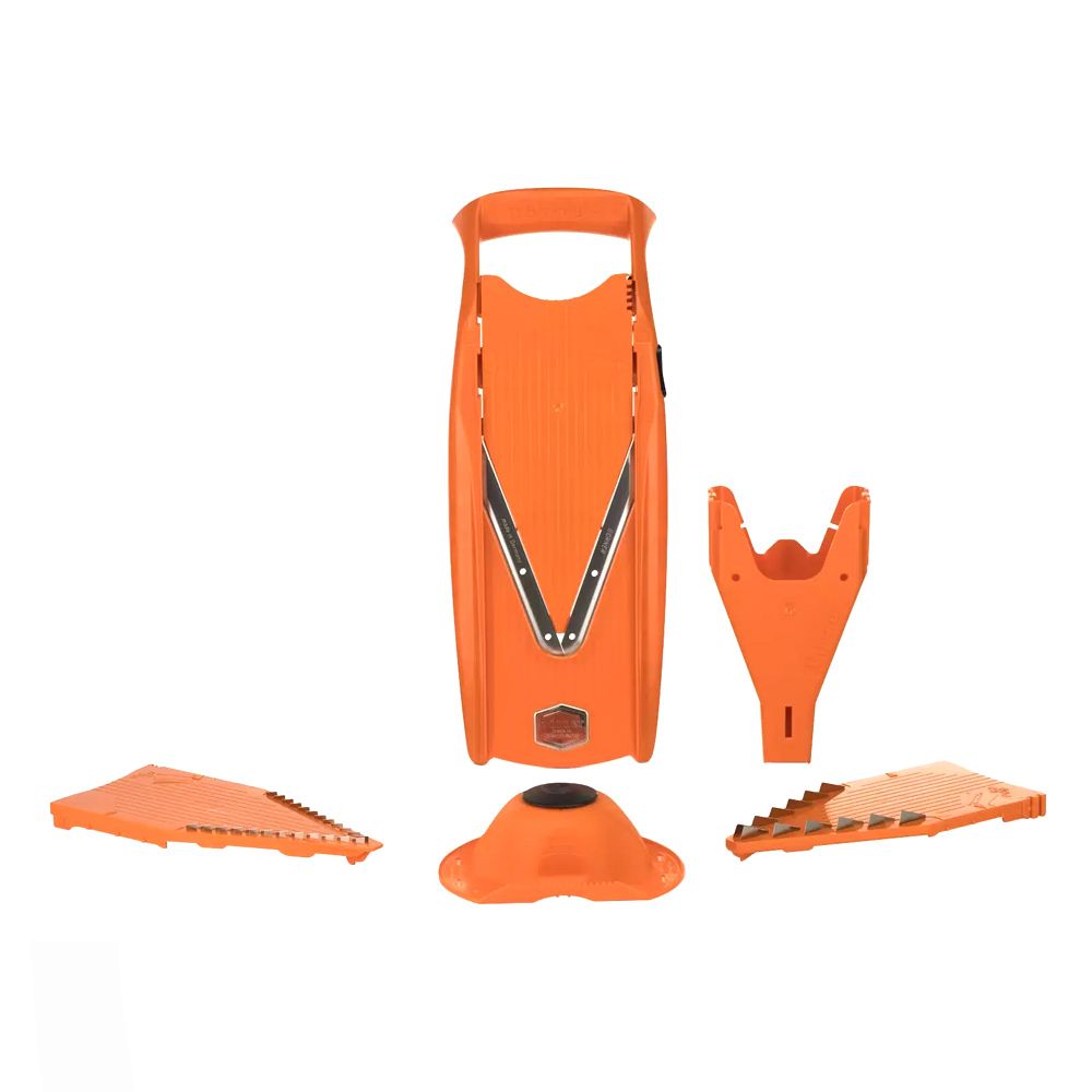 Набор для резки продуктов состоит из 5 предметов: основной нож, три вставки и плододержатель.