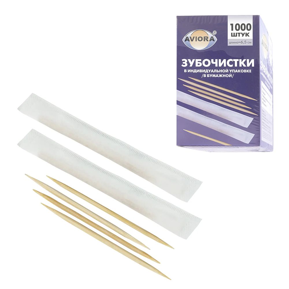 Бамбуковые зубочистки в индивидуальной бумажной упаковке, 1000 шт. в коробке
